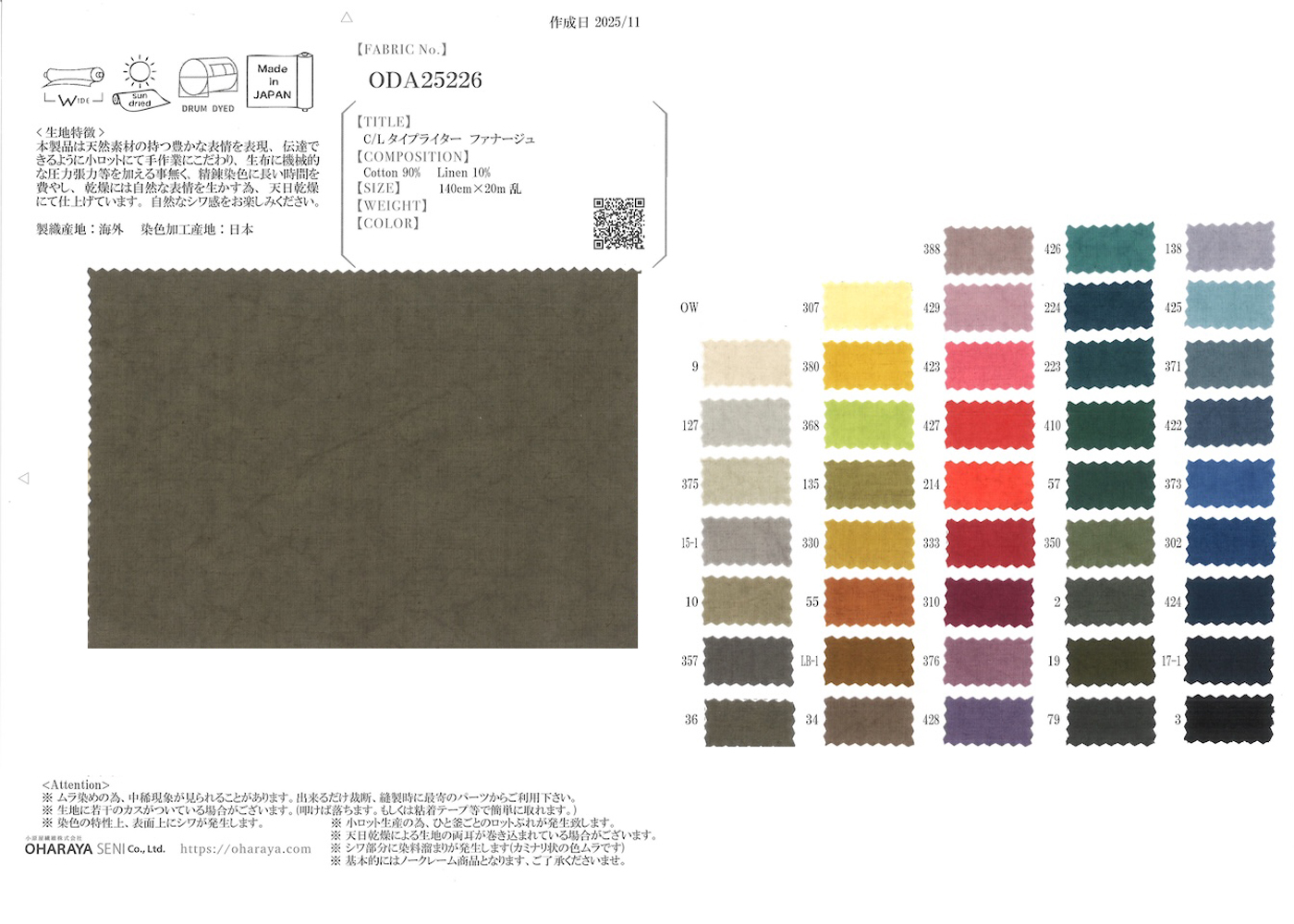 ※麻や綿、シルク、ウールなどの天然繊維には糸節や糸ムラ、多少の織りキズは天然素材の特性上、完全に防ぐことができませんのでご了承ください。 ※裁断、縫製後のクレームはご遠慮お願い致します。 ※反内裁断・縫製をお願い致します。 ※ロットぶれが多少発生致します。 ※特殊染色の為、多少のムラができることがあります。 ※ムラ染めの為、中希現象が見られることがあります。出来るだけ裁断、縫製時に最寄のパーツからご利用下さい。 ※※小ロット生産の為、ひと釜ごとのロットぶれが発生致します。