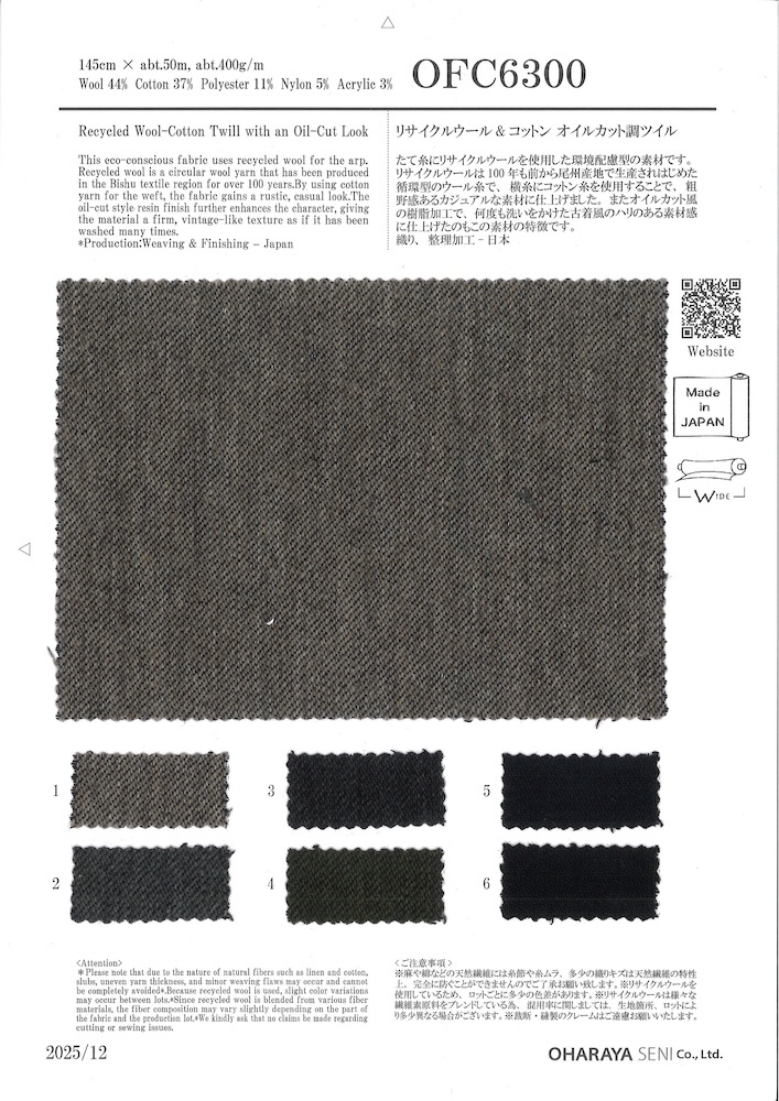 ※麻や綿、シルク、ウールなどの天然繊維には糸節や糸ムラ、多少の織りキズは天然素材の特性上、完全に防ぐことができませんのでご了承ください。 ※裁断、縫製後のクレームはご遠慮お願い致します。 ※反内裁断・縫製をお願い致します。 ※※リサイクルウールを使用しているため、ロットごとに多少の色差があります。※リサイクルウールは様々な繊維素原料をブレンドしている為、混用率に関しましては、生地箇所、ロットにより多少異なる場合がございます
