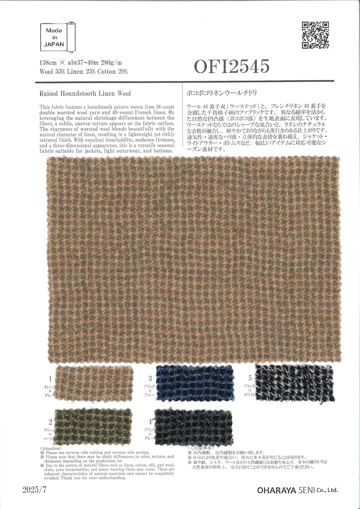 ※麻や綿、シルク、ウールなどの天然繊維には糸節や糸ムラ、多少の織りキズは天然素材の特性上、完全に防ぐことができませんのでご了承ください。 ※裁断、縫製後のクレームはご遠慮お願い致します。 ※反内裁断・縫製をお願い致します。 ※※反内裁断、反内縫製をお願いいたします。