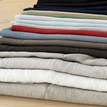 リネンの織布産地である浜松で1/60リネンを使用した生機を作成し、同じく浜松の染工場にてゆっくり時間をかけ染色し、仕上げの際に生地に余計なテンションをかけず仕上げた商品は独特のワッシャー感を出した凹凸のあるラフな生地感の商品となっております。 |