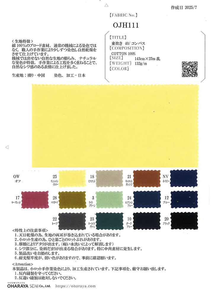 商品説明 綿100%のブロード素材。通常の機械による染色ではなく、職人の手作業により少しずつ染色し自然乾燥をさせて仕上げています。