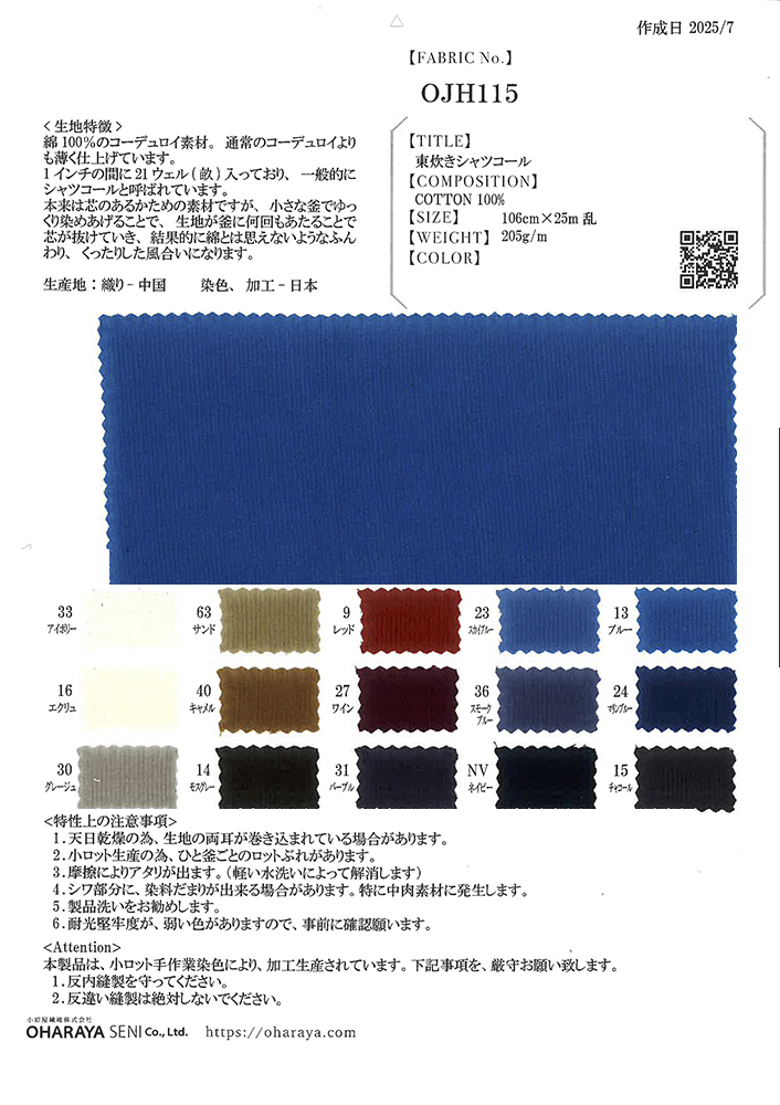 商品説明 綿100%のコーデュロイ素材。通常のコーデュロイよりも薄く仕上げています。