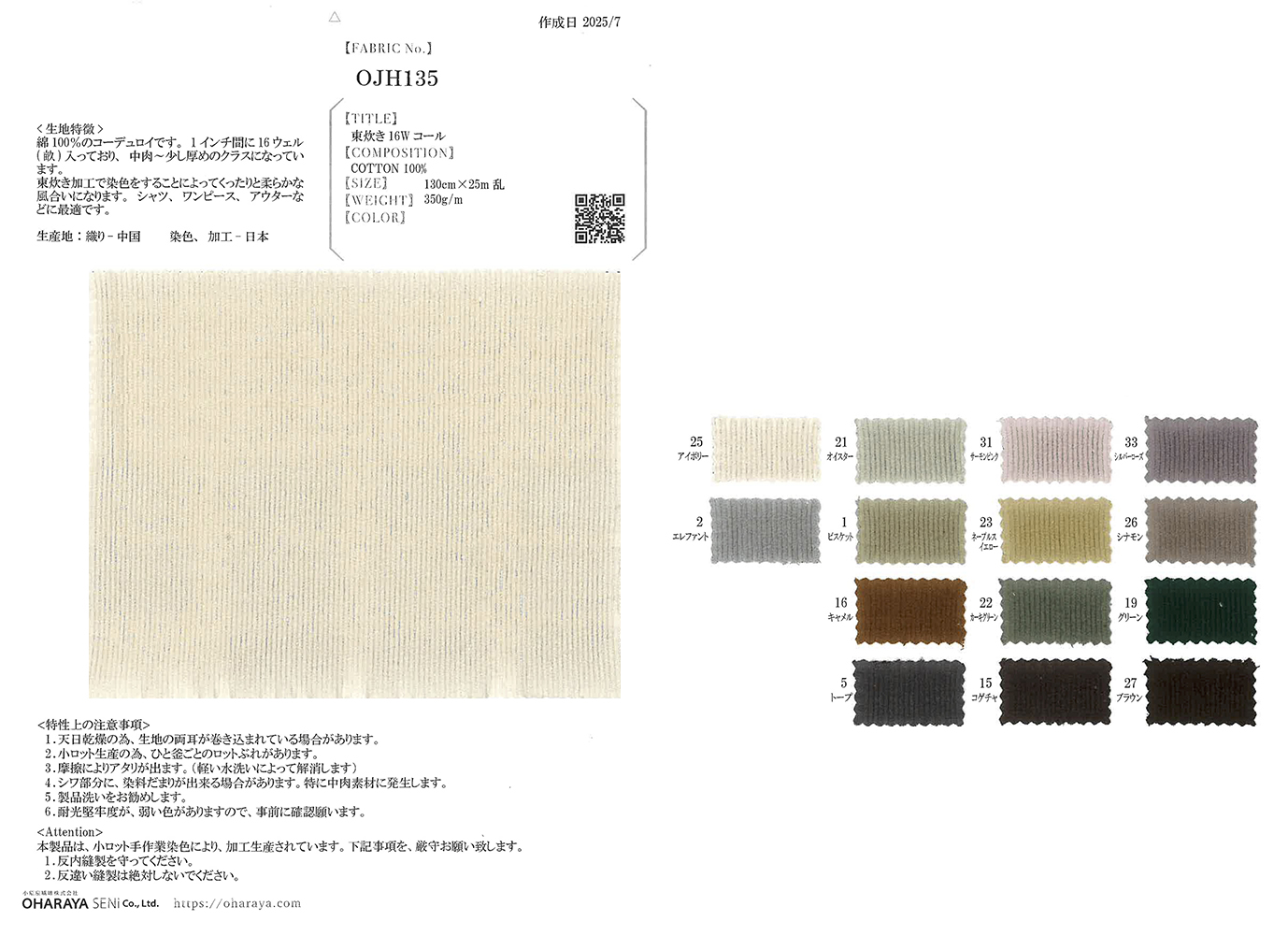 ※麻や綿、シルク、ウールなどの天然繊維には糸節や糸ムラ、多少の織りキズは天然素材の特性上、完全に防ぐことができませんのでご了承ください。 ※裁断、縫製後のクレームはご遠慮お願い致します。 ※反内裁断・縫製をお願い致します。 ※小ロットの生産の為、ひと釜ごとのロットぶれ、色味に濃淡の差が発生します。 ※染料の特性上、色落ち、色移り、アタリが発生しますが、素材の特性としてご了承ください ※摩擦等により白化現象(アタリ、こすれが白く出る)がある場合があります。 ※天日乾燥の為、生地の両耳が巻き込まれている場合があります。
