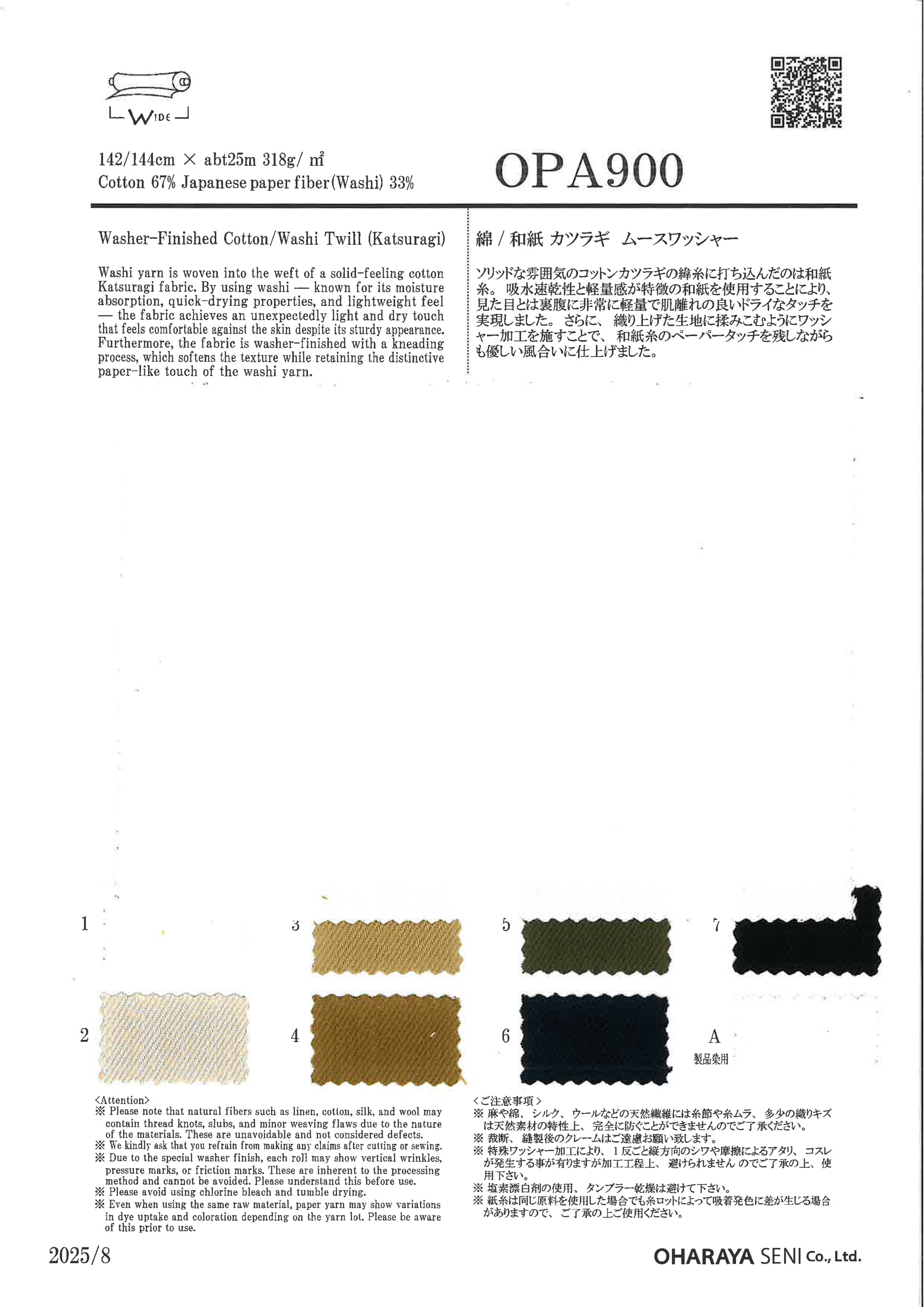 ※特殊ワッシャー加工により、1反ごとの縦方向のシワや摩擦によるアタリ、擦れが発生することがありますが、加工工程上、避けられませんのでご了承の上、使用ください。
