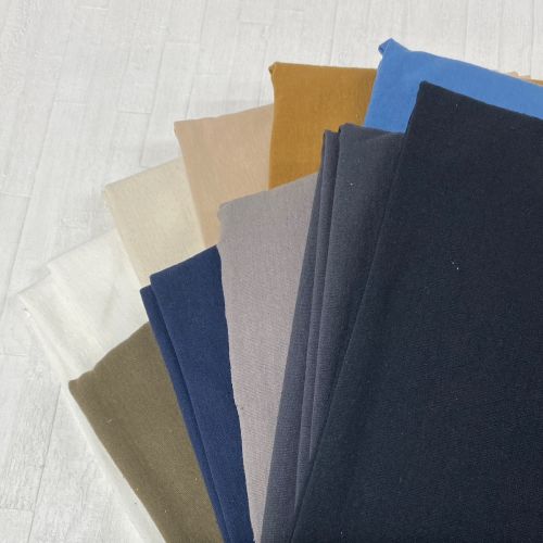 縫製や生地加工の過程で発生する裁断くずや不要な生地、糸くずなどを活用し、100%リサイクルコットンで織り上げたエコロジカルな天竺生地です。生機は生成原料のみで反毛されており、そのためアゾフリーで、人体や環境への影響を抑えています。ナチュラルな風合いとしっかりとした目付で、カジュアルからしっかりとしたアイテムまで幅広く対応可能な素材です。