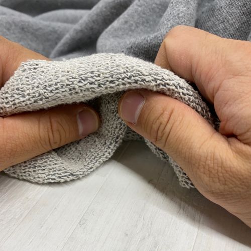 縫製や生地加工の過程で発生する裁断くずや不要な生地、糸くずなどを活用し、100%リサイクルコットンで編み上げたエコロジカルな天竺生地です。生機は生成原料のみで反毛されており、そのためアゾフリーで、人体や環境への影響を抑えています。ヘビーウェイトながらもナチュラルな風合いと豊かな表情を持ち、サステナブルな製品づくりに最適な素材です。