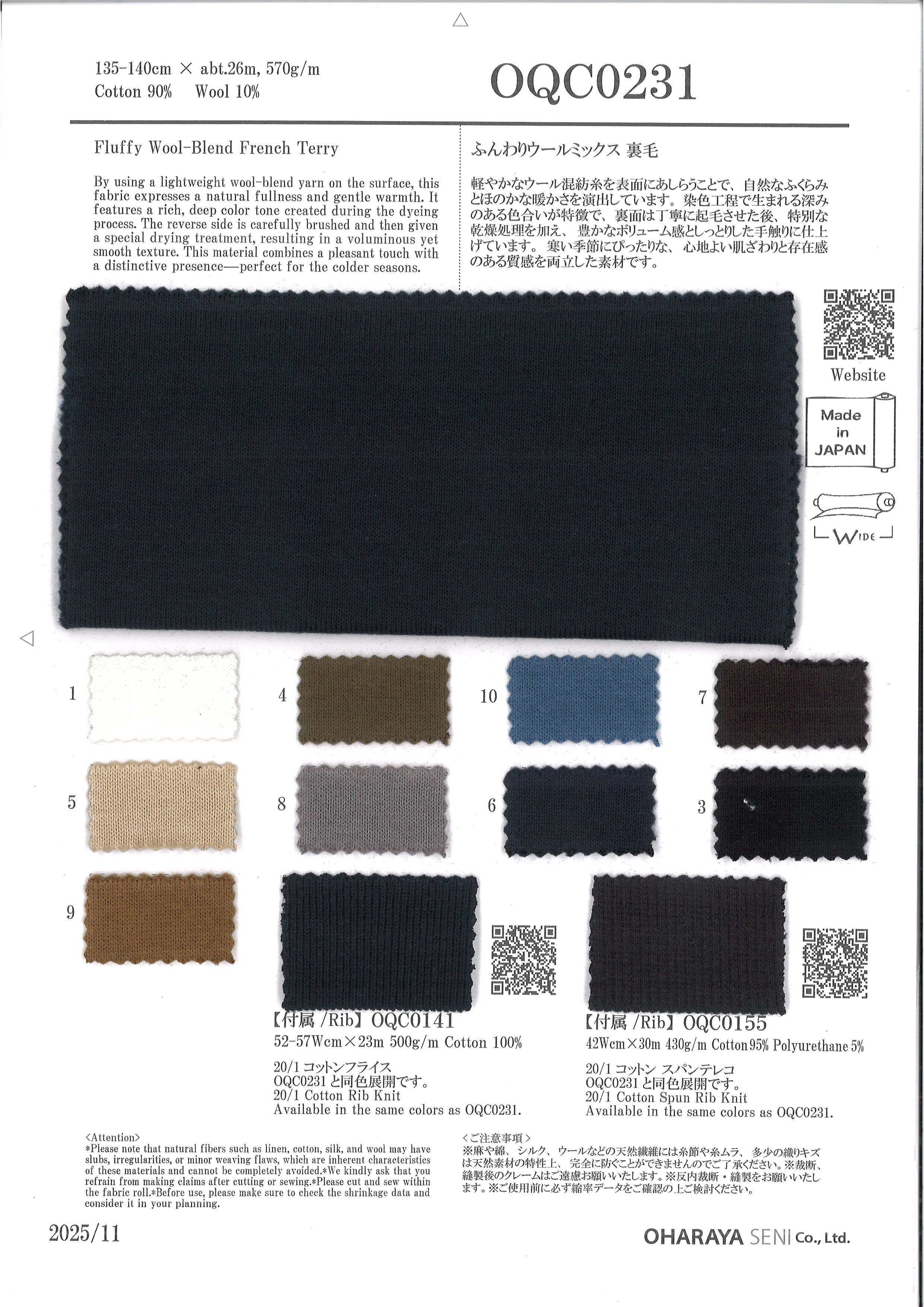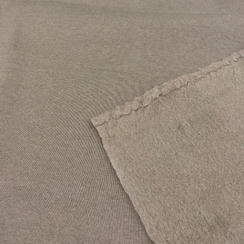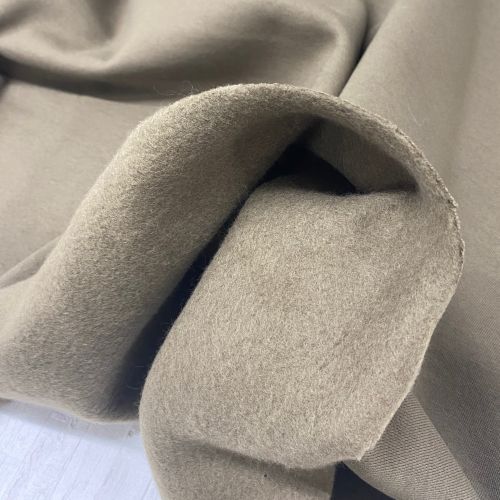 軽やかなウール混紡糸を表面にあしらうことで、自然なふくらみとほのかな暖かさを演出しています。染色工程で生まれる深みのある色合いが特徴で、裏面は丁寧に起毛させた後、特別な乾燥処理を加え、豊かなボリューム感としっとりした手触りに仕上げています。寒い季節にぴったりな、心地よい肌ざわりと存在感のある質感を両立した素材です。