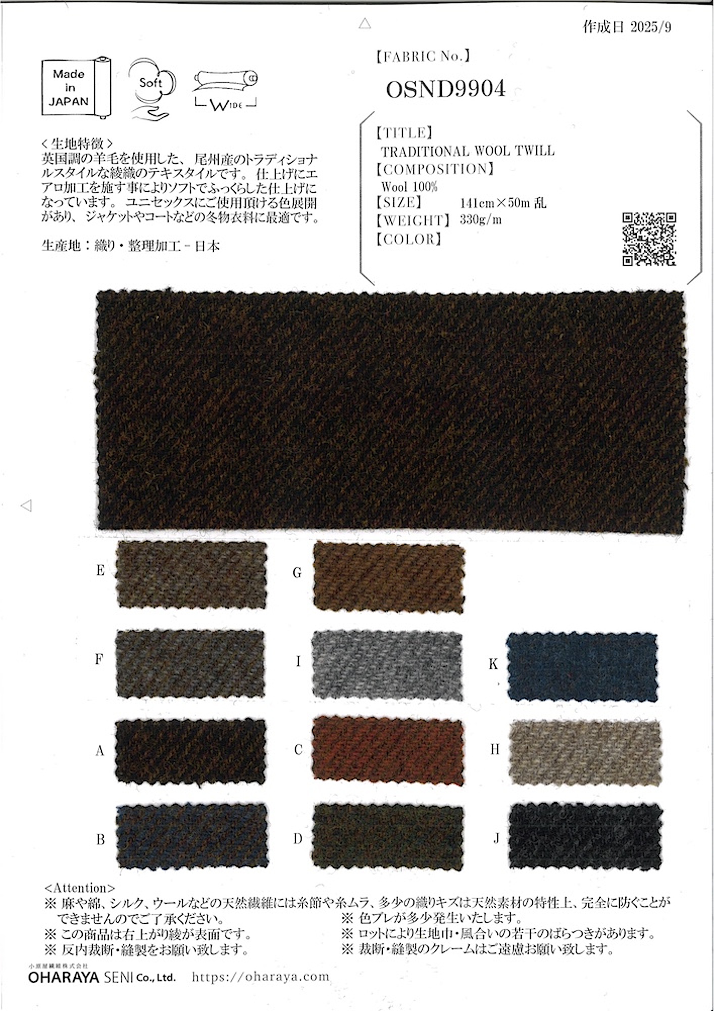 英国調の羊毛を使用した尾州産のトラディショナルスタイル向きのツイル。エアロ加工という加工を施す事によりソフトでふっくらした仕上げになっています。ジャケットなどに最適です。