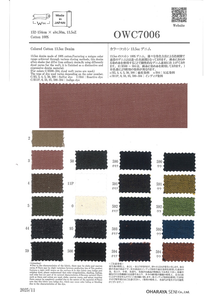 ※麻や綿、シルク、ウールなどの天然繊維には糸節や糸ムラ、多少の織りキズは天然素材の特性上、完全に防ぐことができませんのでご了承ください。 ※裁断、縫製後のクレームはご遠慮お願い致します。 ※反内裁断・縫製をお願い致します。 ※本商品は後染めの際にインディゴ染料を使用している為、色ムラや中希、色落ちは商品の特徴としてお考え下さい。製品洗いをしてご利用お願い致します。 ※ロットぶれが多少発生致します。 ※この生地は右綾が表になります。 ※インディゴ染料を使用しておりますので堅牢度にはご注意ください。(染料の特性上、色落ちが発生いたします)