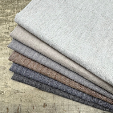※麻や綿、シルク、ウールなどの天然繊維には糸節や糸ムラ、多少の織りキズは天然素材の特性上、完全に防ぐことができませんのでご了承ください。 ※裁断、縫製後のクレームはご遠慮お願い致します。 ※反内裁断・縫製をお願い致します。 ※この生地は右綾が表になります。 ※本商品は後染めの際にインディゴ染料を使用している為、色ムラや中希、色落ちは商品の特徴としてお考え下さい。製品洗いをしてご利用お願い致します。