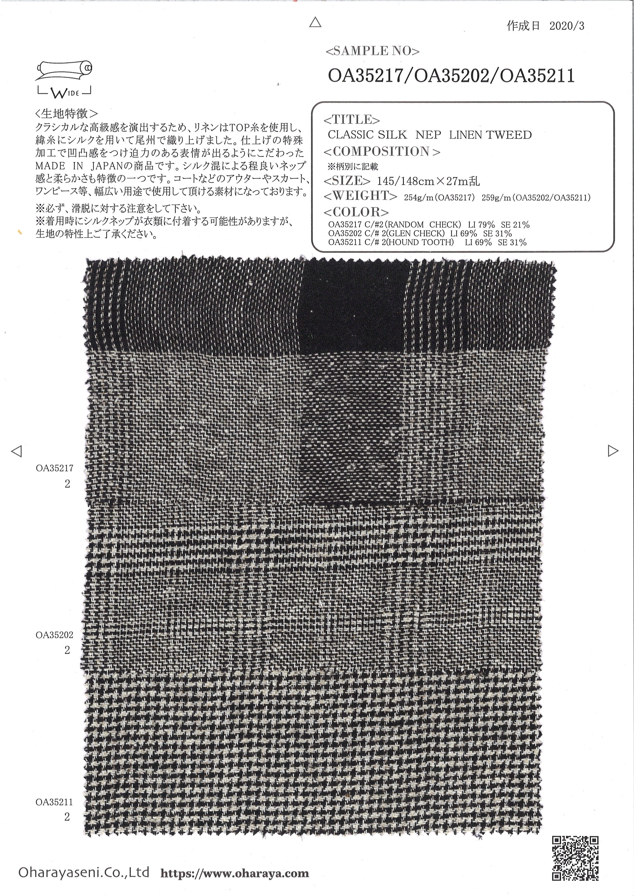 ラミーとシルクと再生繊維(セルロース)のローン