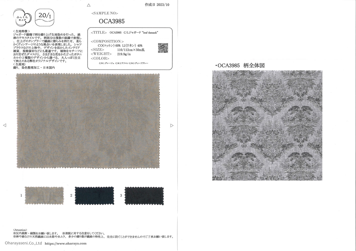 C/Lジャカード “leaf damask”