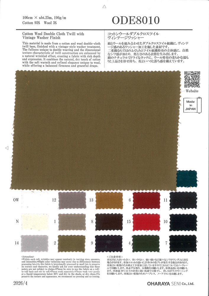 コットンウールダブルクロスツイル ヴィンテージワッシャー