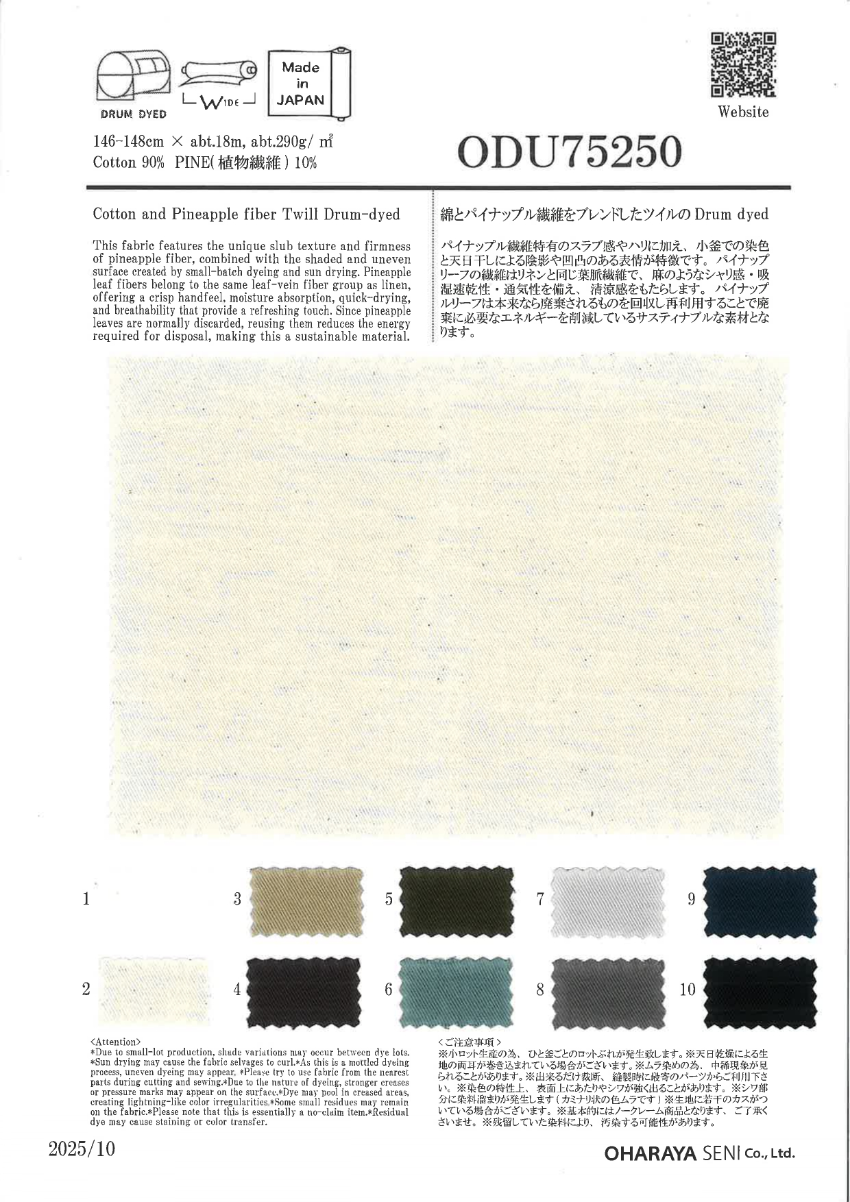 綿とパイナップル繊維をブレンドしたツイルのDrum dyed