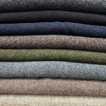 リサイクルウール(リサイクル糸)を使用した環境配慮型のウール素材です。リサイクルウールは100年も前から尾州産地で生産されはじめ、紡毛糸を紡績する時に出る綿くずを再利用していました。そして近年は環境に配慮した循環型素材として、注目されている素材です。