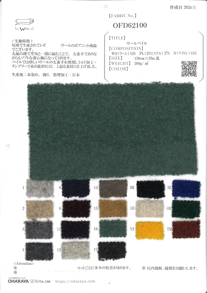 ※麻や綿、シルク、ウールなどの天然繊維には糸節や糸ムラ、多少の織りキズは天然素材の特性上、完全に防ぐことができませんのでご了承ください。 ※裁断、縫製後のクレームはご遠慮お願い致します。 ※反内裁断・縫製をお願い致します。