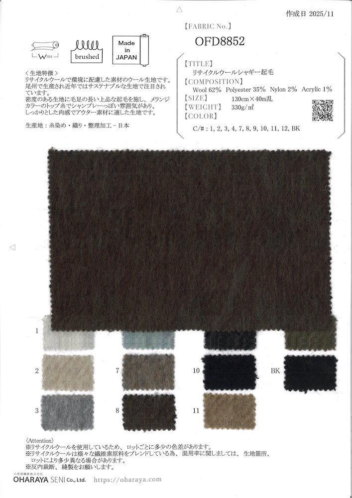 ※※リサイクルウールを使用しているため、ロットごとに多少の色差があります。※リサイクルウールは様々な繊維素原料をブレンドしている為、混用率に関しましては、生地箇所、ロットにより多少異なる場合があります。