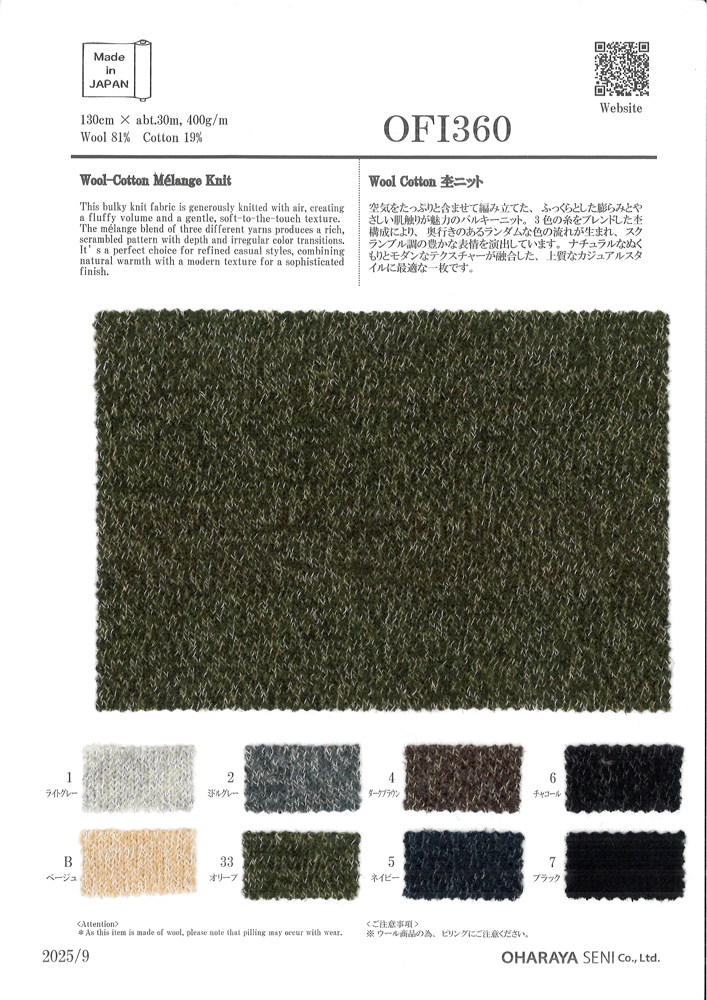 空気をたっぷりと含ませて編み立てた、ふっくらとした膨らみとやさしい肌触りが魅力のバルキーニット。3色の糸をブレンドした杢構成により、奥行きのあるランダムな色の流れが生まれ、スクランブル調の豊かな表情を演出しています。ナチュラルなぬくもりとモダンなテクスチャーが融合した、上質なカジュアルスタイルに最適な一枚です。