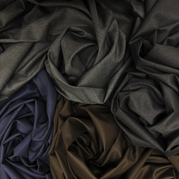 高品質な極細のウールの原料である、Super100's を高密度に織り上げたギャバジンです。 毛羽を丁寧に落とす加工によって表面をフラットに整え、光沢を引き出しています。 ギャバジン特有の適度なハリとコシを持ちながら、しなやかなドレープ性が特徴的です。 |