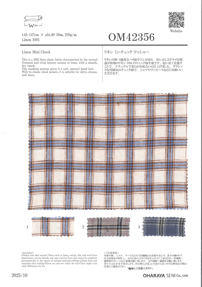 リネン ミニチェック ワッシャー