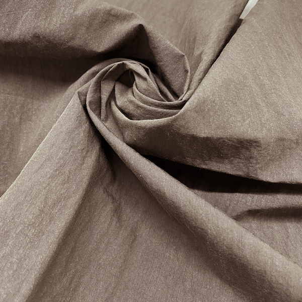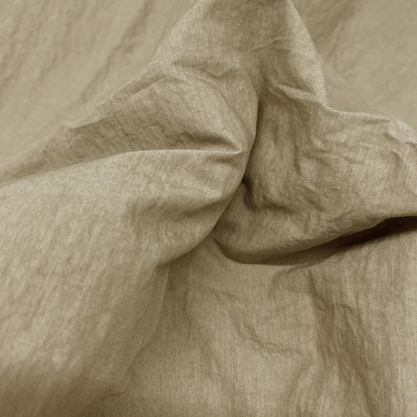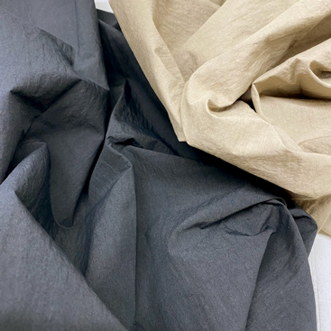コットンにしなやかさを。80番手のコットンに繊細な70dのナイロン糸を組み合わせ、天然素材のナチュラル感とナイロンのしなやかさを融合し、高密度で織り上げる事でハリ感も持ち合わせた素材に仕上げました。仕上げ時に生地に負担をかけず自然なワッシャー感を残した素材です。(ナイロン糸はリサイクルナイロンを使用してます) |